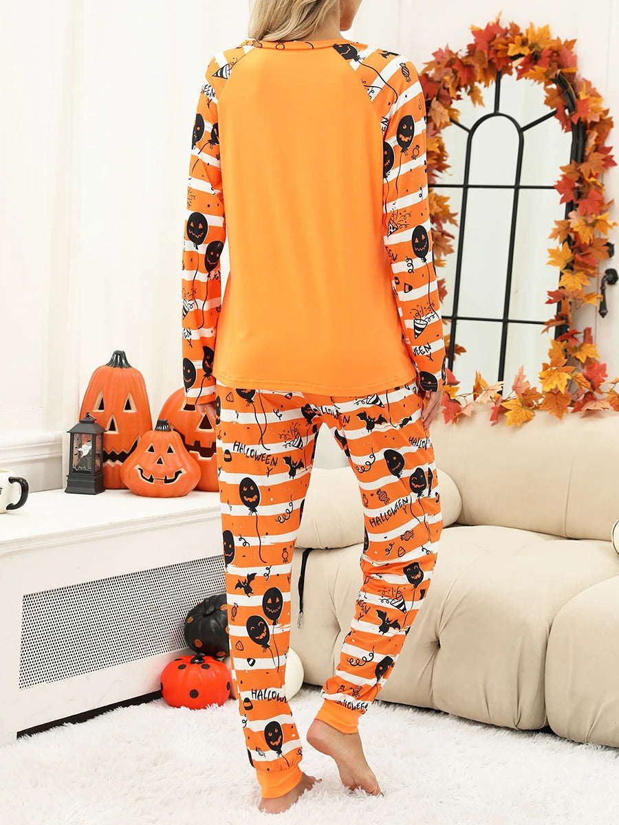 Ghost & Pumpkin Print Women’s Halloween Pajama Set